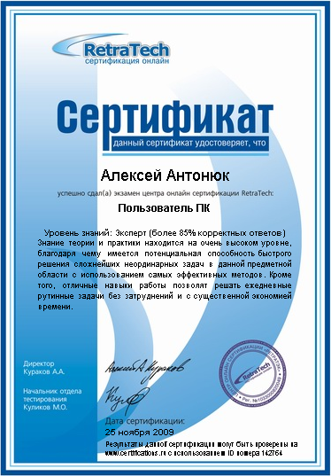 Сертификаты Retratech